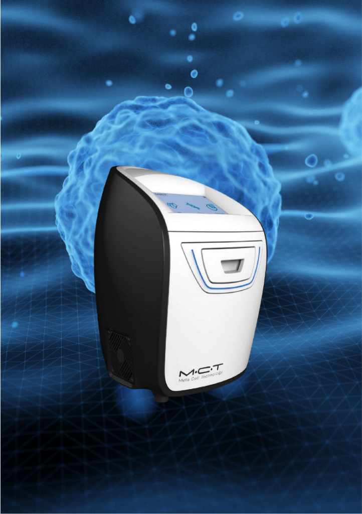 Meta Cell Technology (MCT) is a photothermal bio-modulation technology applied to autologous materials such as Platelet-Rich Plasma (PRP) and stem cells collected from the patient’s blood or tissue to enhance those materials’ innate functions. Processing PRP and stem cells through MCT is described as enabling elongated release of growth factors and stimulated exosome secretion.